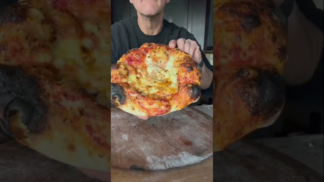 The Baking Steel Pizza was made in 4 minutes. After the launch, 2 minutes using the broiler followed by 2 minutes of convection bake. On top is crushed tomatoes with oregano fontina cheese and fresh mozzarella. This crust was beautiful….