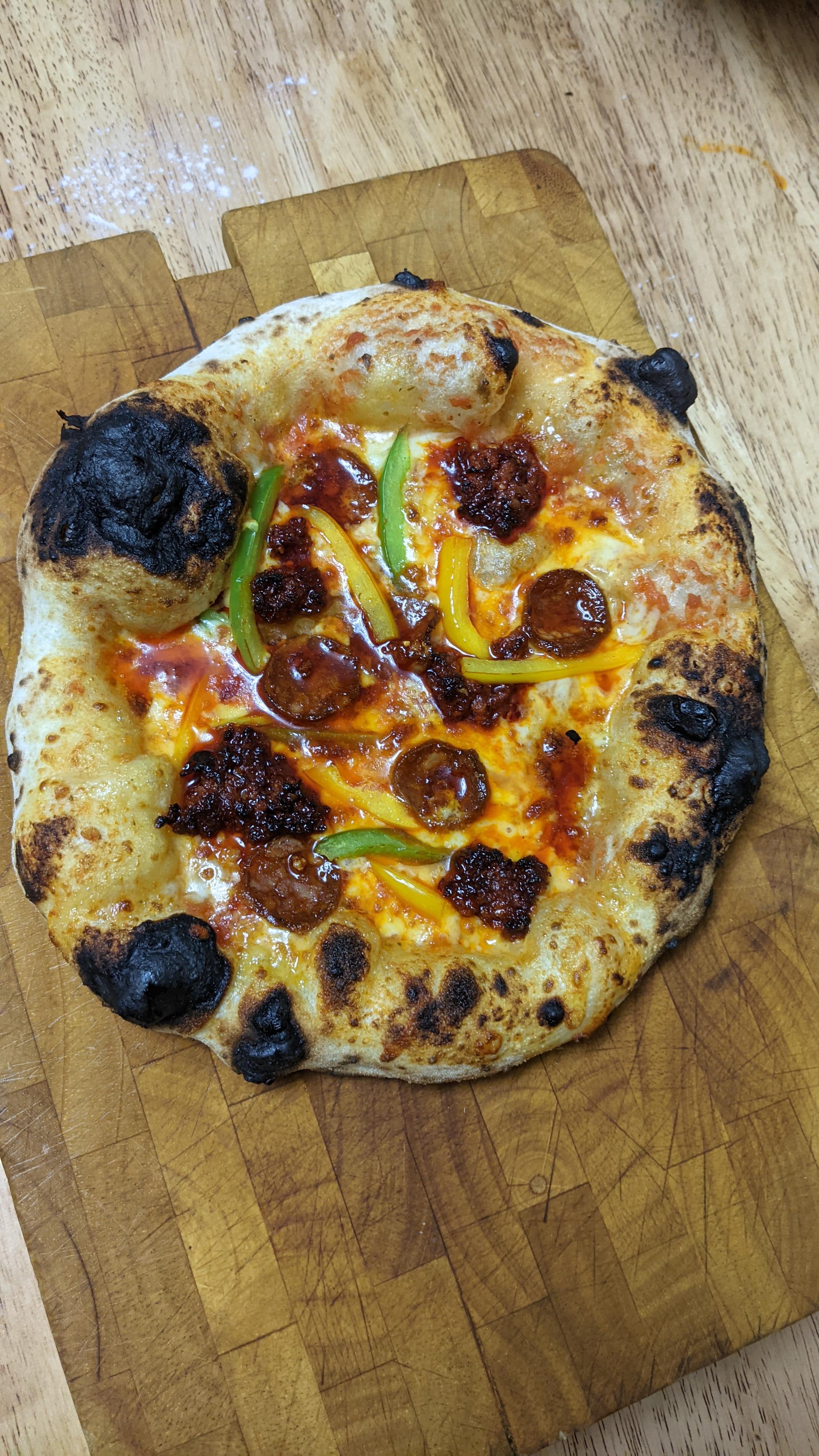 Still lovely, mix of Njudetta and Chorizo on there, 3 other pizza’s came before it so just used what was left in terms of toppings. Njudetta is very oily n spicy which I love, but maybe a bit too oily