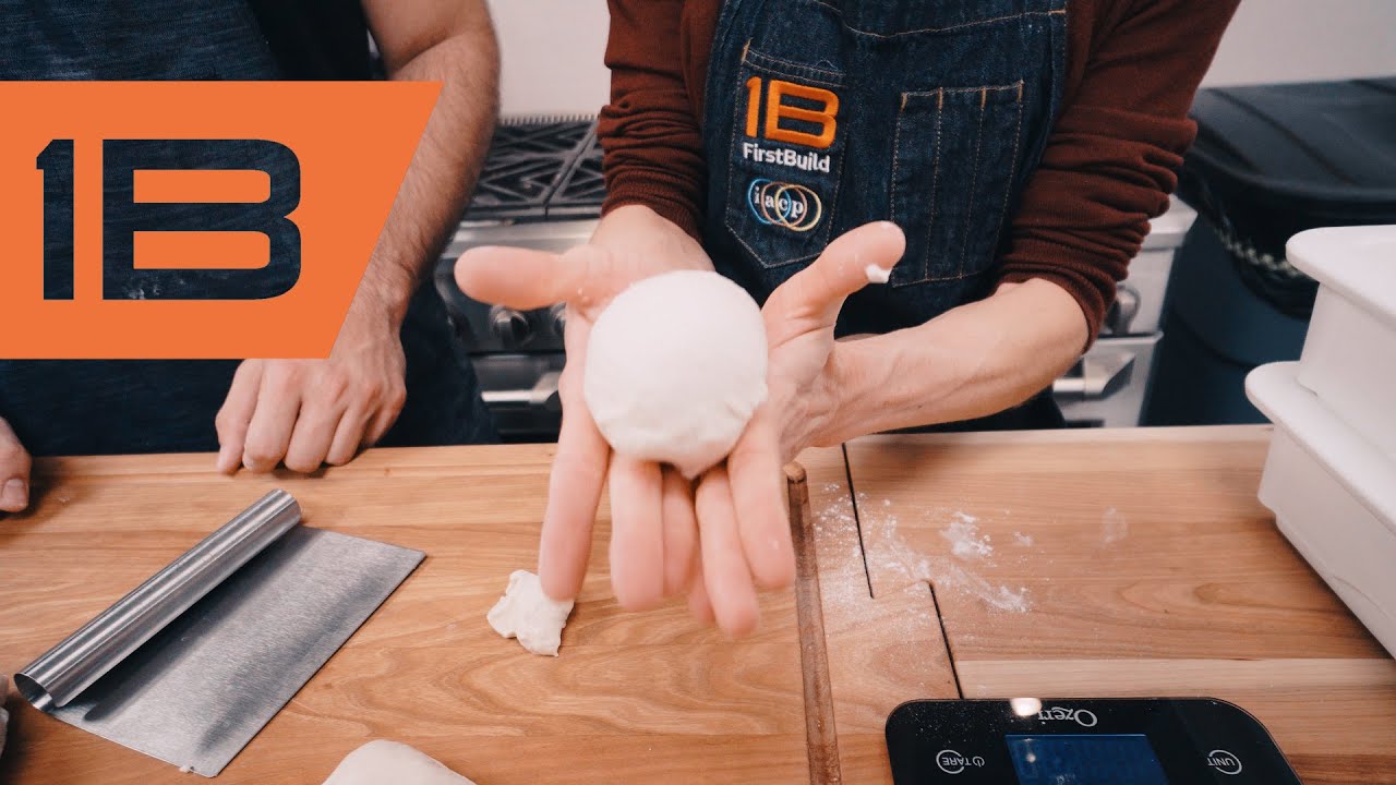 • Four hours before making pizza, remove the dough from the refrigerator and immediately form into dough balls. Cut and weigh the dough into 224G portions. Then roll each portion into a tight dough ball. Place the dough balls in a covered container, seam down, and allow to rise. When the dough balls have doubled in size and reached room temperature, they are ready for stretching!