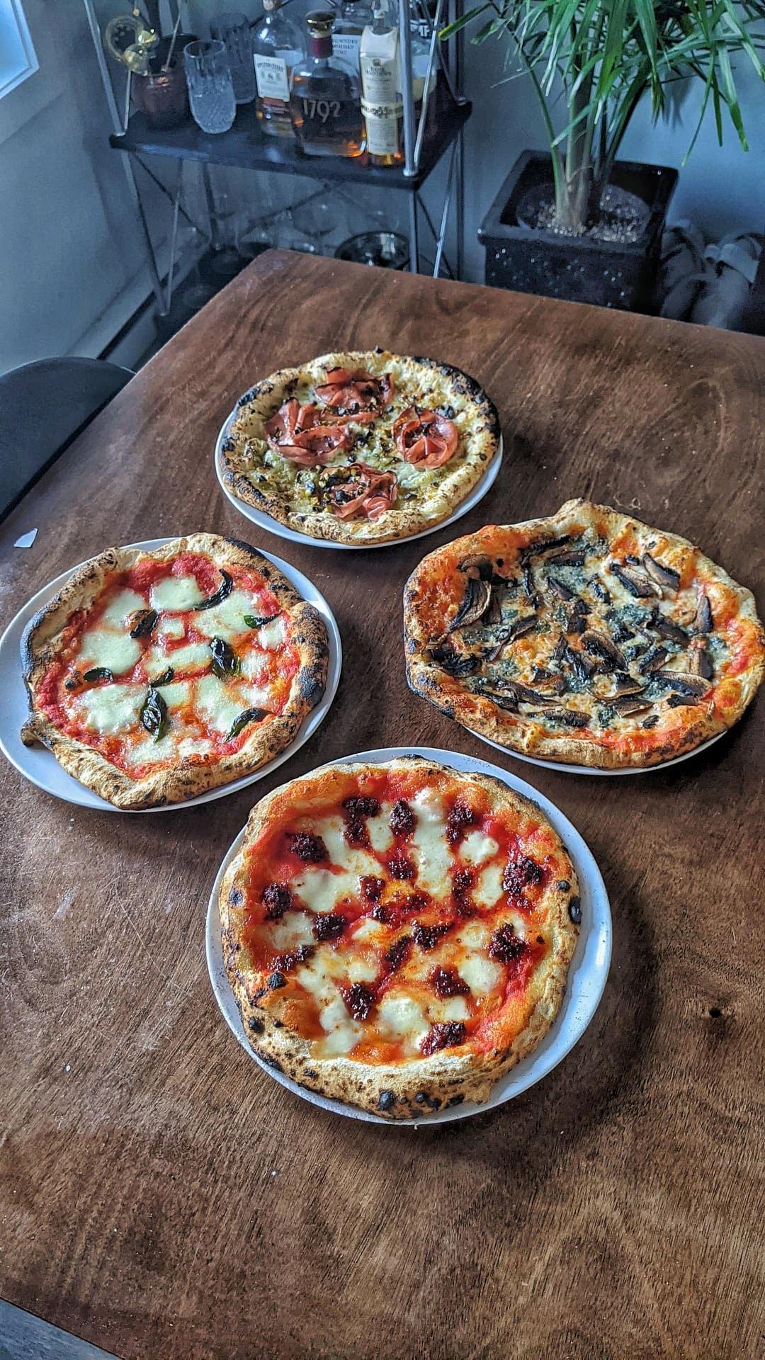 Slowly starting to get the hang of it, 4 pizzas from this weekend on the Ooni Koda.by FrenchAffair NapoletanaNeapolitanNeapolitan pizzaOoni Koda 🔥pizzaPizza Napoletana 4 Comments FrenchAffair 5 years ago About a month in on the Ooni, used /u/zecathos dough recipe I saw on here.‘Nduja and hot honeyPizza MargheritaMortadella, Pesto and PistachioQuattro Formaggi & Fungo>Dough for 4x 230g dough balls:>537g “00” pizza flour>365g water>17g salt>0,3g instant dry yeast.https://www.reddit.com/r/neapolitanpizza/comments/isjfae/pizza_margherita/g5bu83v/ pastel_orange 5 years ago These look amazing I wish I could use the Koda indoors as I don’t have an outdoor space spaffage 5 years ago These look premium Burns_Burns 5 years ago Looking good my friend!Write A CommentYou must be logged in to post a comment.