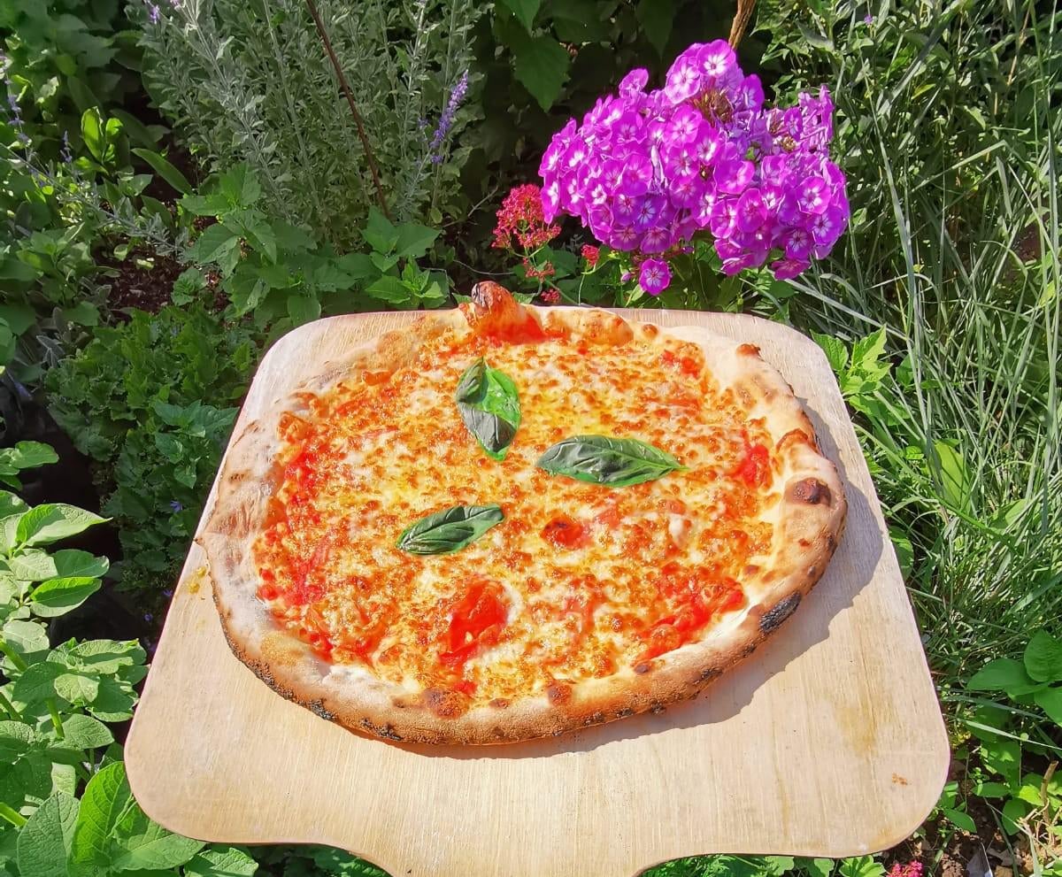 I used the recipe from the AVPN (https://www.pizzanapoletana.org/en/ricetta_pizza_napoletana) but utilised a wheat based sourdough and some dry yeast. The tomatoes are San Marzano DOP tomatoes and the basil comes fresh from the garden.