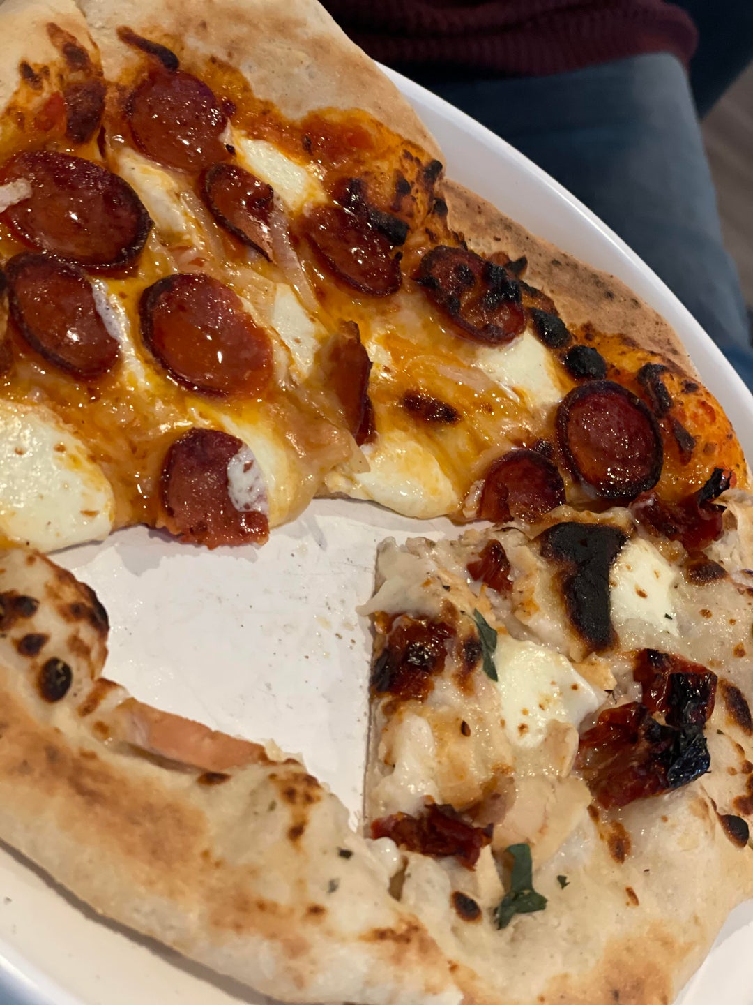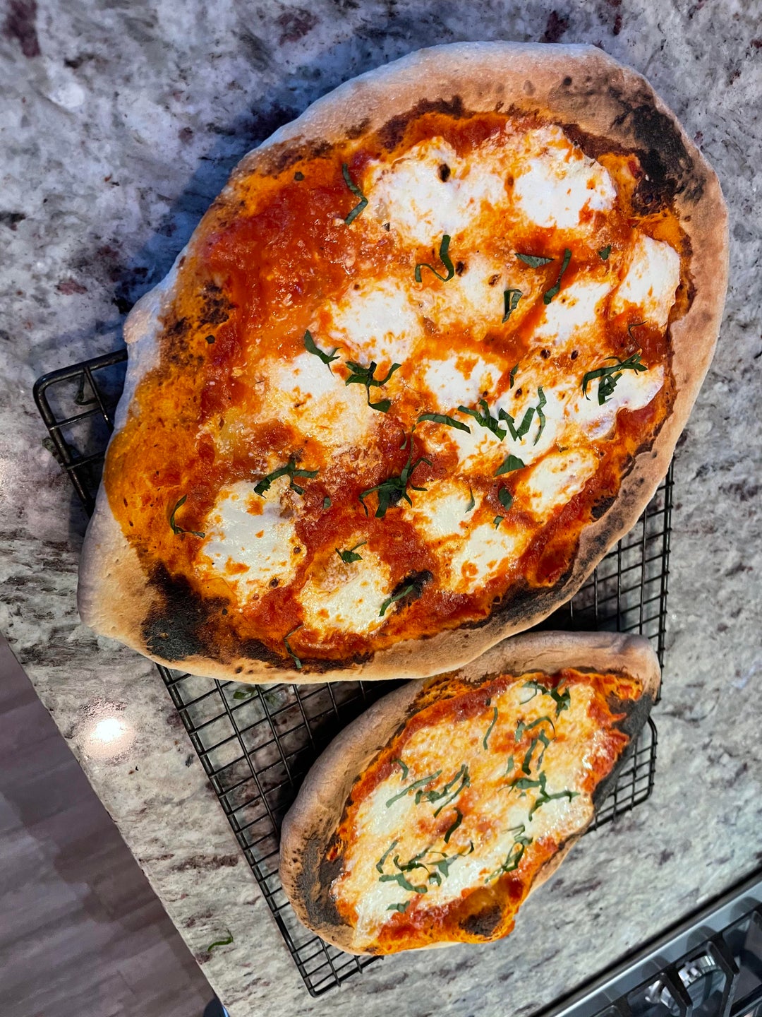 Rate my pizzas. Wondering what feedback y’all can give on the dough just from looking at it… overall pretty good. Ooni 3 with the gas conversion (just got it after 9 months out of stock)