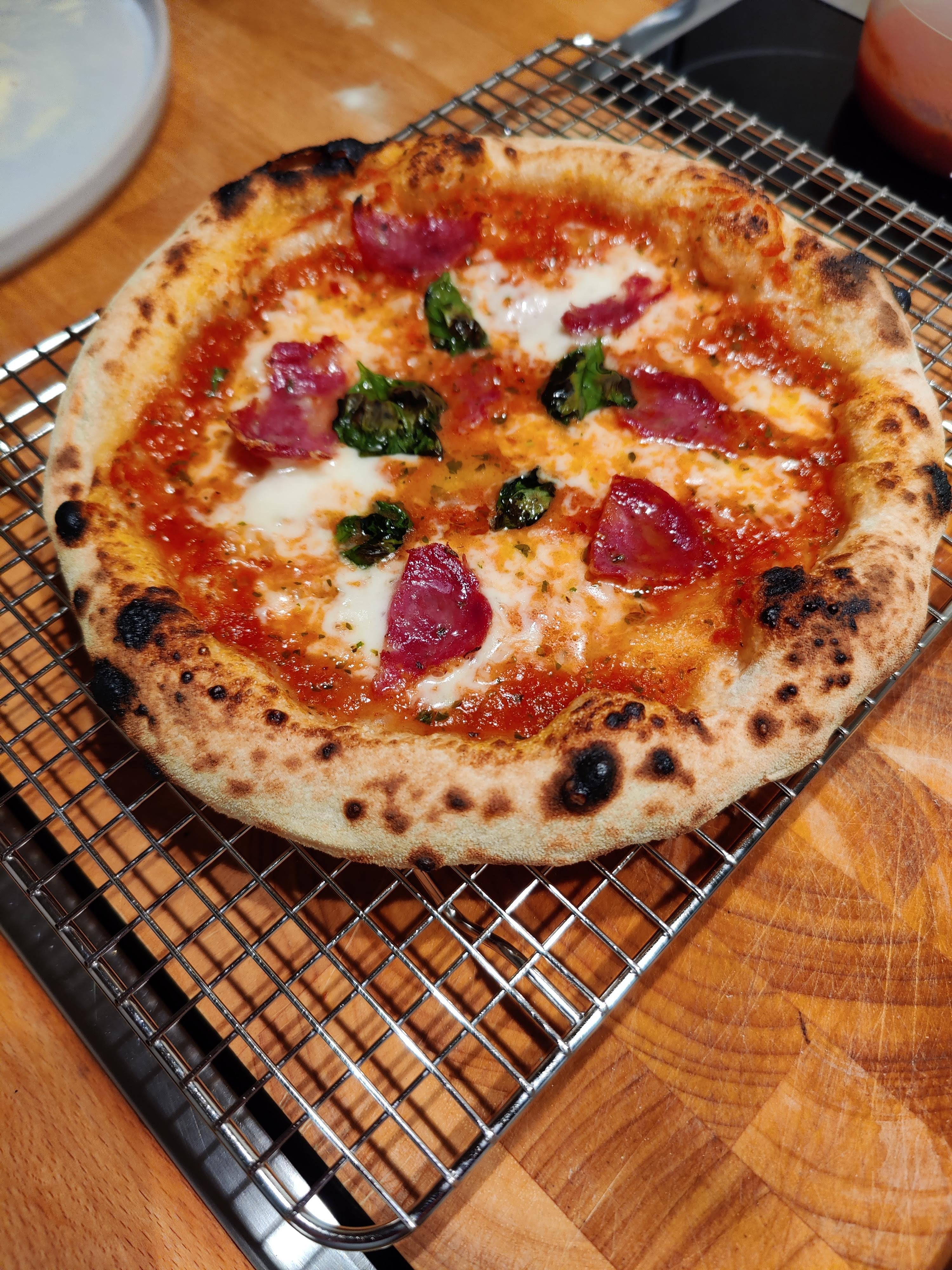 Taste-wise I am really happy with my results. But I’m still trying to figure out how to make a really nice looking pizza. By this I mean even leoparding and an even cornicione, especially no big single bubbles.