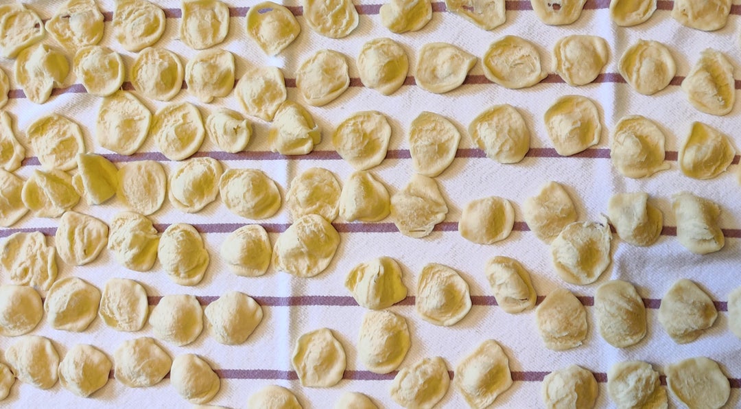 Pasta: 200g Semola, 100g water, salt. I used about 2 grams per piece and rolled it out using a knife on a surface