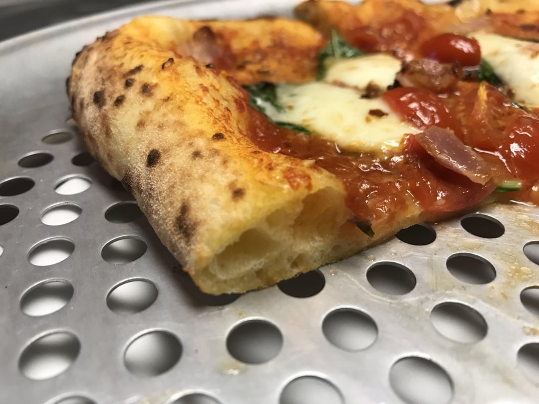 RexBooty 5 years ago 36hr cold ferment at 15.5C. 66% hydration using La Molisana 00 Pizza Flour. 2.5% salt. 0.98 grams of fresh yeast.