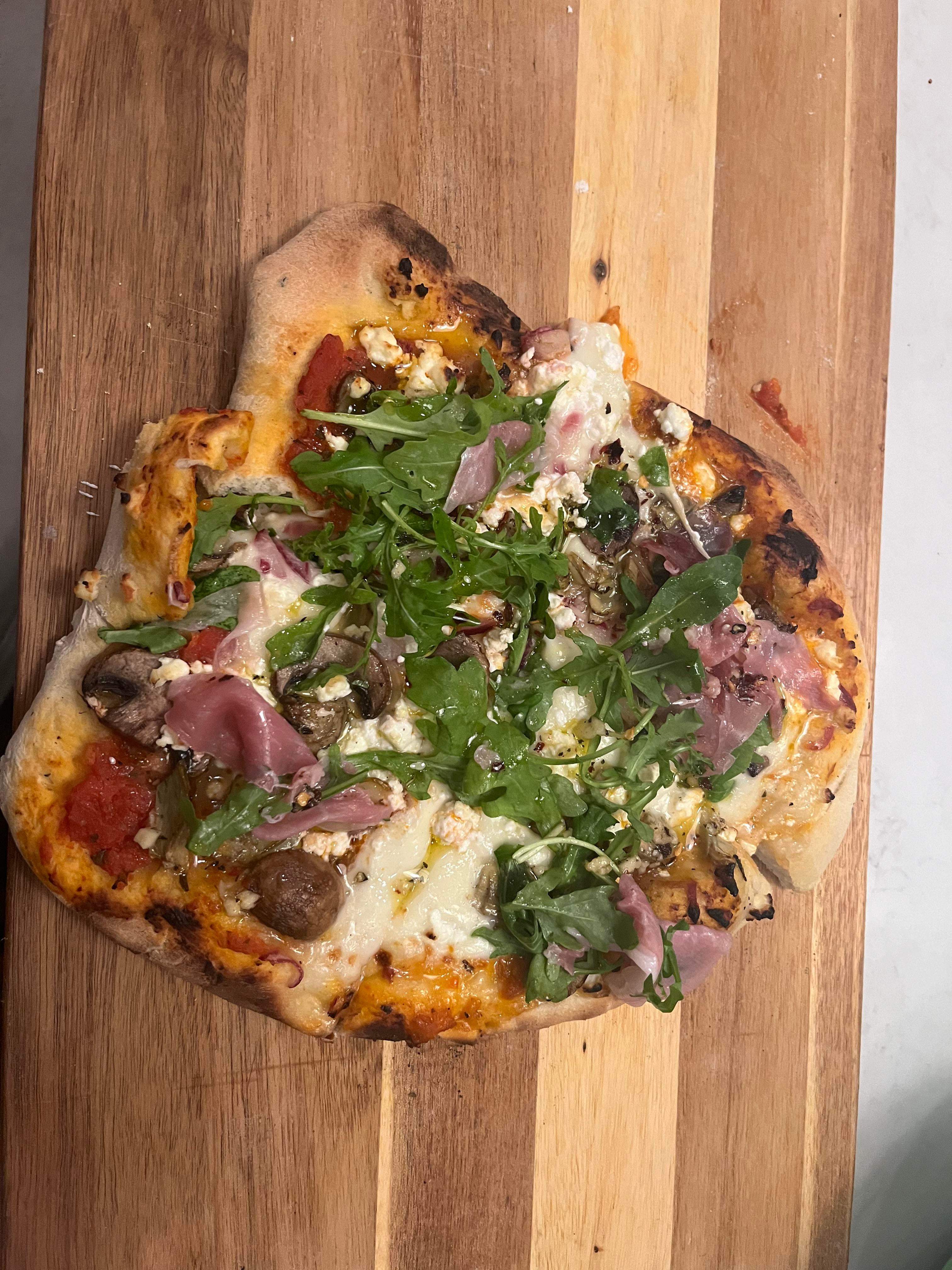 Arugula and prosciutto? Some goat cheese?