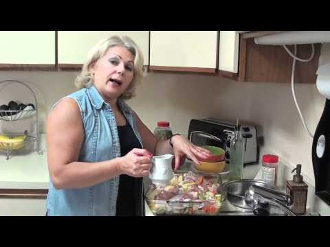 – Bay Leaves – Salt – Crushed red pepper – Oregano – Yellow & red peppers – 1 1/2 cups chopped up onion – 5 or 6 pieces of celery – 5 or 6 carrots – Potatoes – 2 pound of chicken legs – Extra virgin olive oil