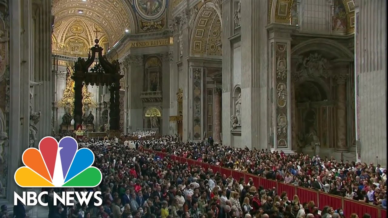 Pope Francis leads midnight mass on Christmas Eve from the Vatican in front of thousands of Catholics.Β