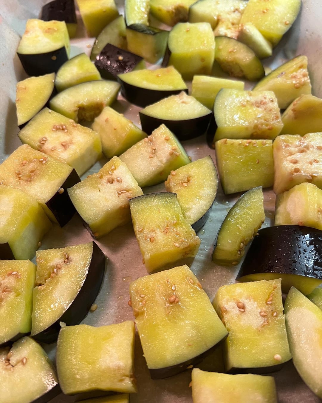 You can experiment a bit with the size of your diced eggplant, maybe a bit smaller can enhance the flavor, but this is already perfect!