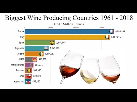 Top ten wine producing countries ranked in million tonnes between 1961 – 2018Source – 19612018BIGGESTbiggest producers of winebiggest wine producing countriescountriescountries ranked by wine productionfrance winefrench vineyardsitalianItalian WineItalyItaly WineProducingvideovineyardsVlogwinewine productionYouTube