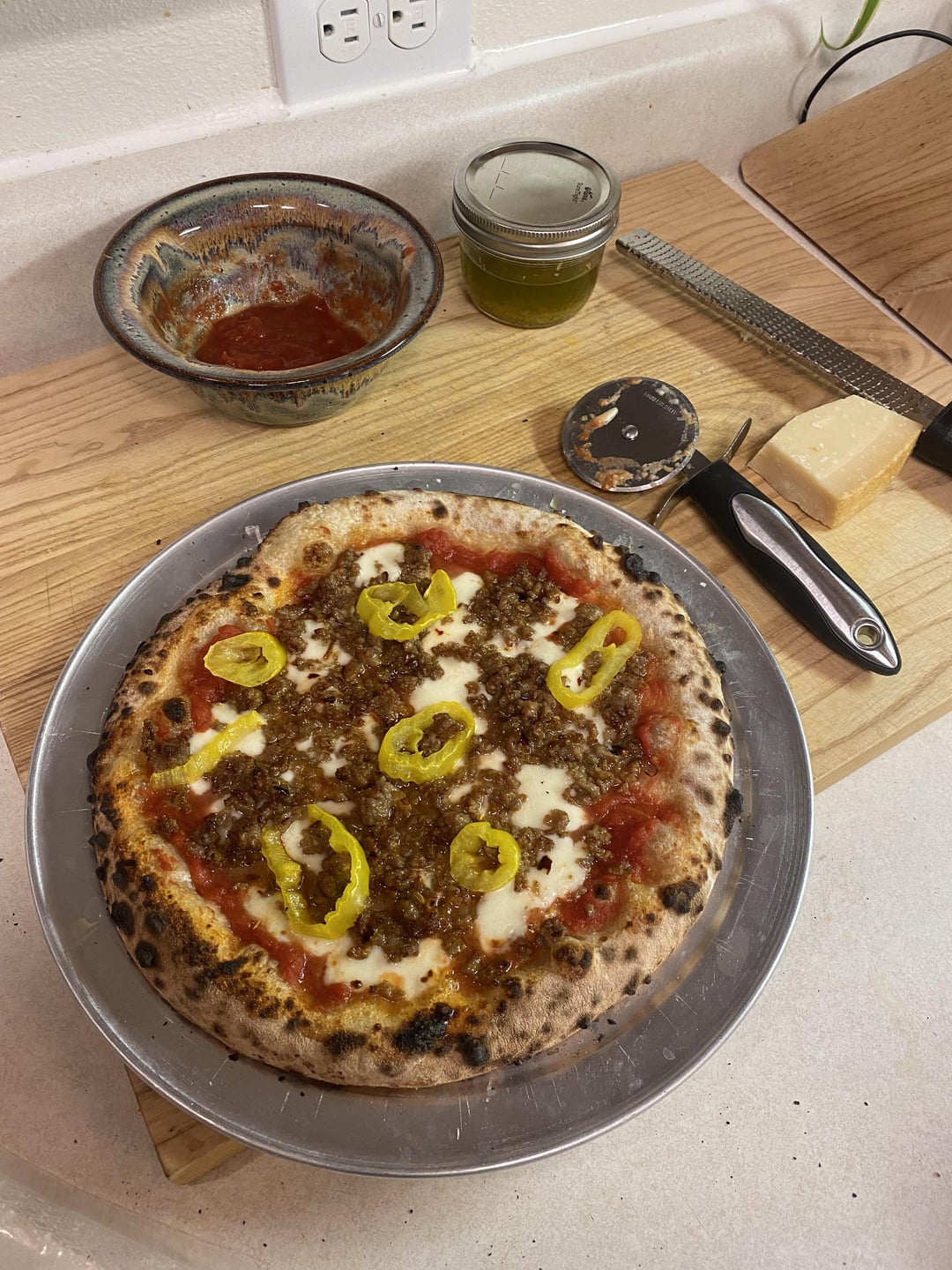 Friday night pizzasby CorgiLady NapoletanaNeapolitanNeapolitan pizzaOoni Koda 🔥pizzaPizza Napoletana 7 Comments giddygoat2769 3 years ago yes SIR! JeroenKnippenberg 3 years ago Nice looking pizzas! What toppings are on that second one? CaroAmico 3 years ago Papaccelle? calosauce 3 years ago Looking gooood. It made me want to prepare some dough for tomorrow. _Alexskitchen_ 3 years ago These are really perfect pizze napoletane!!! grapefruitmakmesalty 3 years ago I was your friend until I saw the crumbled sausage. You are dead to me. gb1982 3 years ago Where did you cook these beauties?Write A CommentYou must be logged in to post a comment.
