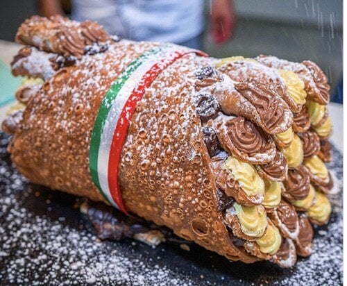 Somebody made a giant Cannoli made up of mini cannolis because why not