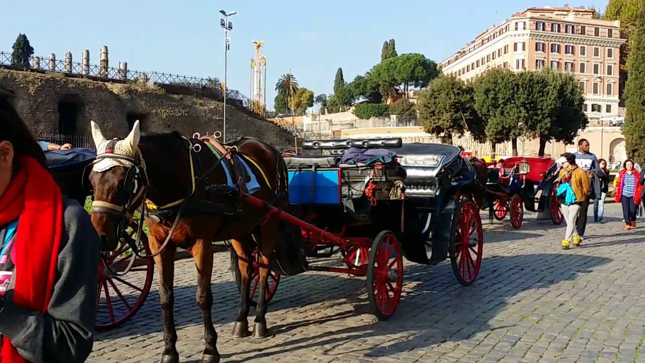 We found this amusing! Horses snacking while waiting for paying customers, just beside The Colosseum in Rome.