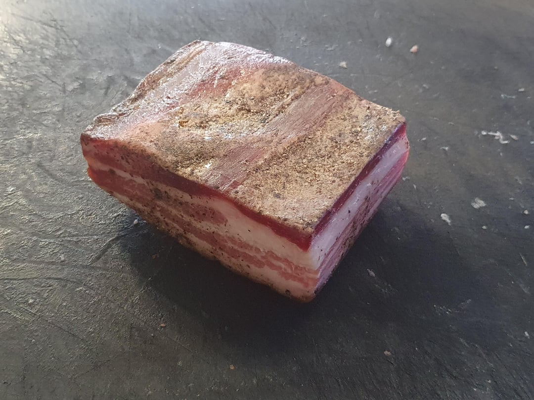 Italian meat dishes are predominantly braised in a “sofritto”. Sofritto is a vegetable base used as a sauce base for braised dishes and consists of equal parts of diced onions, celery and carrots. Therefore, cut the vegetable chowder into small cubes and set them aside for now – this will form the sofritto used later. Cut the pancetta into small cubes and add to the sofritto.