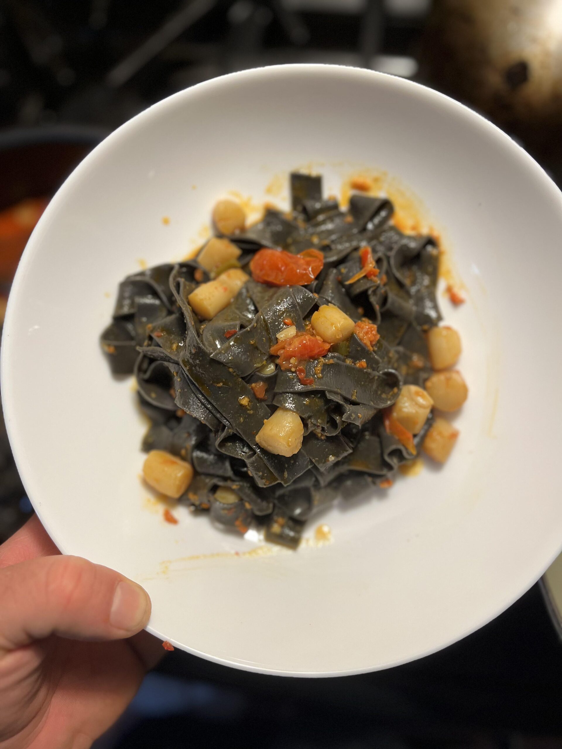I tweaked my squid ink pasta dish a little this time. Pappardelle, scallops again, pepperoncino, tomatoes and nduja.by imthebartnderwhoareu homemadeitalian foodItalian RecipesWrite A CommentYou must be logged in to post a comment.