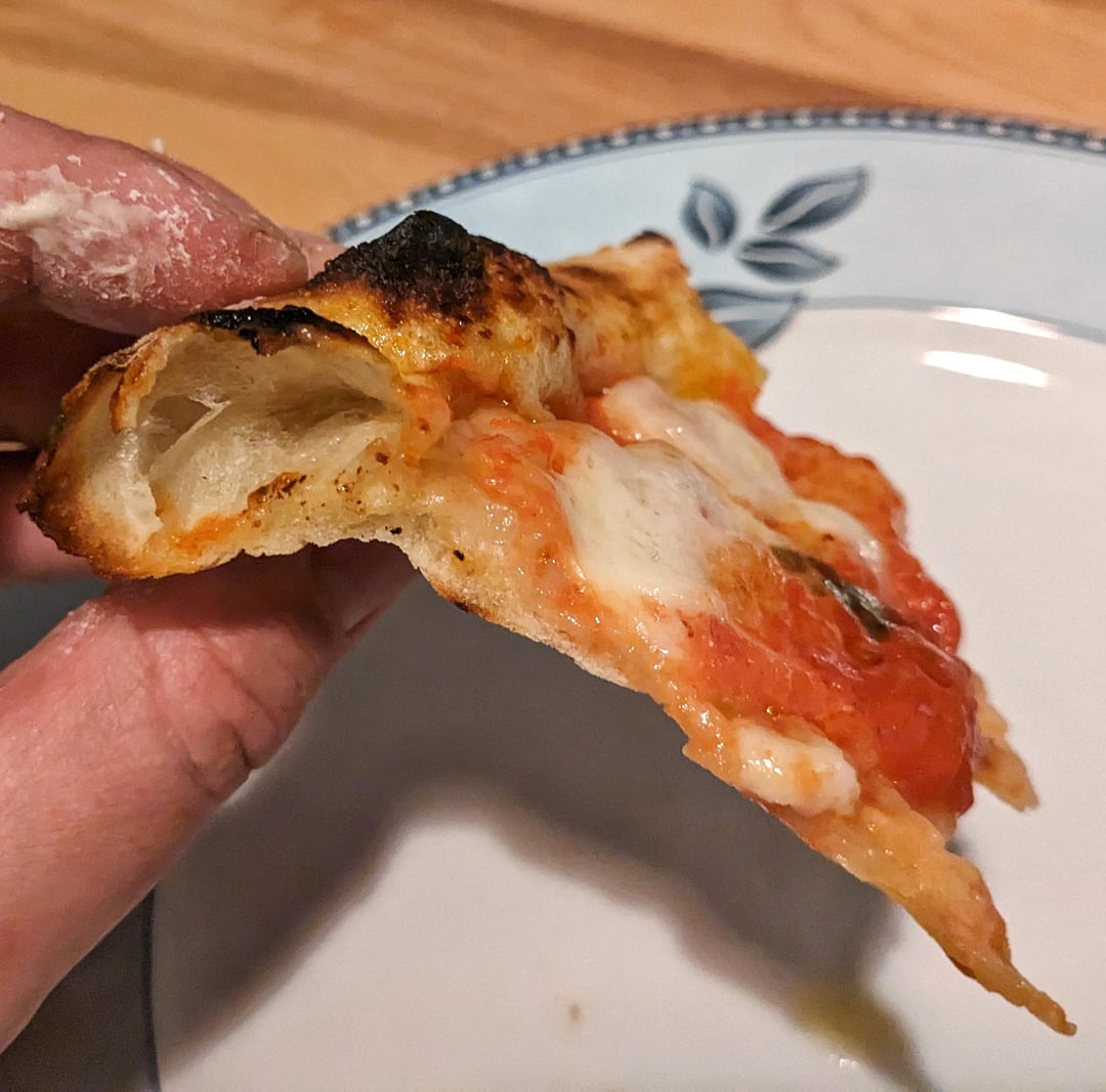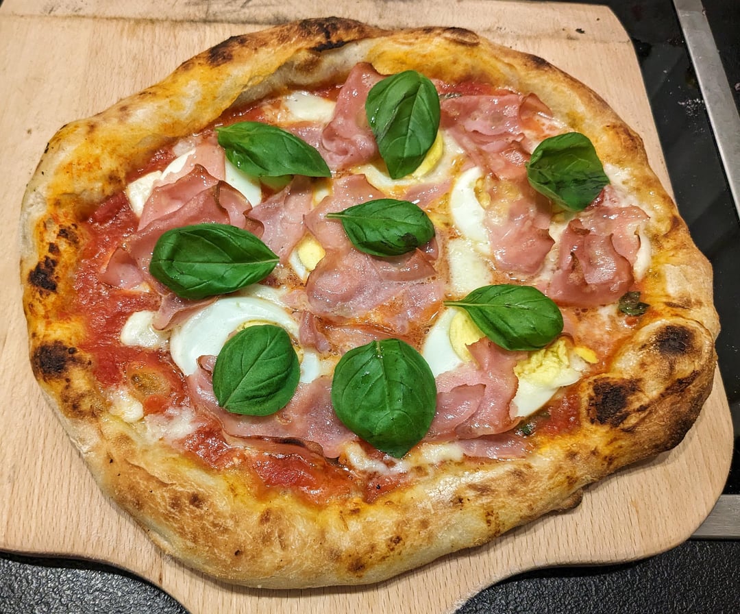 I am still practicing with opening the balls, and sometimes the crust gets out of control in the oven and rises too much and is getting to near to the heating coils, which leads to too dark colors, but else, the baking times prove to be consistently 150 for Margherita and for Pizzas with extra toppings 180 seconds. Maybe it helps me to re-shape the balls when taking them out of the fridge and let them rise for another 60-90 minutes.