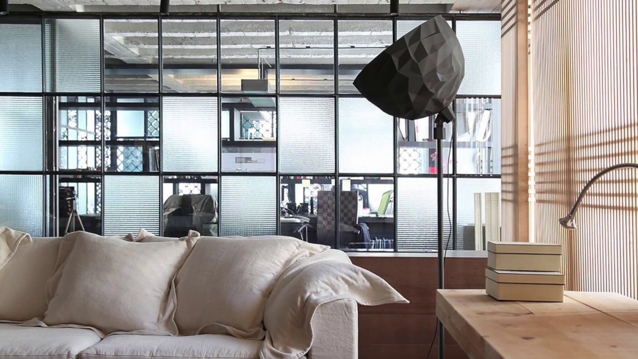 Our client wanted a space to house his architectural material showroom, two office spaces, and a livable city apartment. In this case the working area has a separate entrance from the elevator and stair, and is enclosed with a sandblasted glass and steel box. The dining table and kitchen are used during the day as the conference table and office coffee/snacks, and at night as the dining and cooking area. The sleeping area is on the south west part of the building and separated with a series of concrete columns.