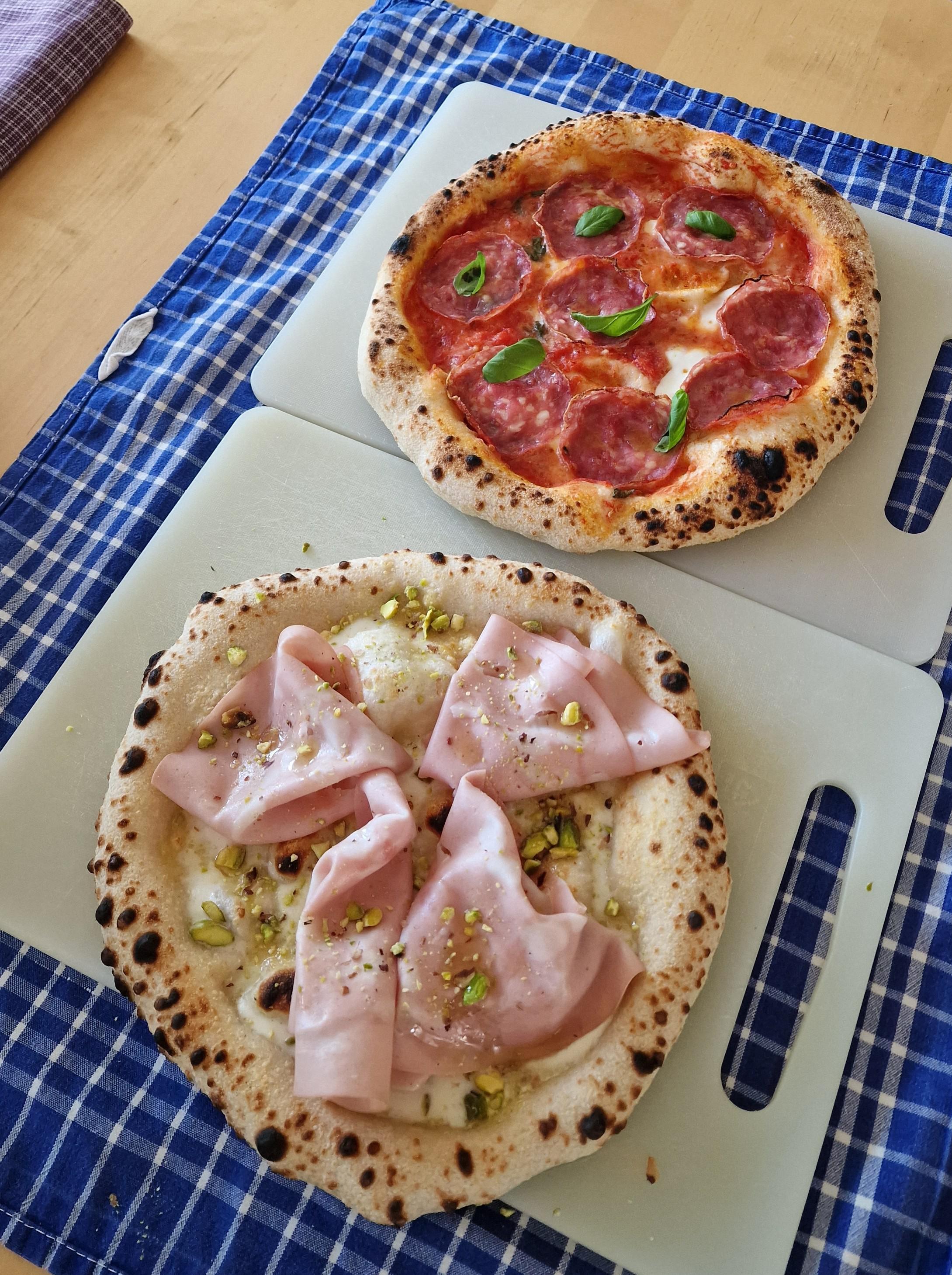 The upper one is tomato sauce, mozzarella, parmesan and salame. The bottom one is mozzarella, parmesan and mortadella with crushed pistachios and honey drizzled on top. The flour used was Caputo Nuvola. by MasterSanTzu NapoletanaNeapolitanNeapolitan pizzaOther 🔥/⚡pizzaPizza Napoletana 5 Comments Kooky-Motor4669 3 years ago Nice leoparding … Hypergraphe 3 years ago They look really tasty ! mindwarp-hs 3 years ago they look awsome! elliotb1989 3 years ago Looks great, but I had my fist pizza of the year on January 1! GodIsAPizza 3 years ago Looks great. Isthe bottom oneyour own invention?Write A CommentYou must be logged in to post a comment.