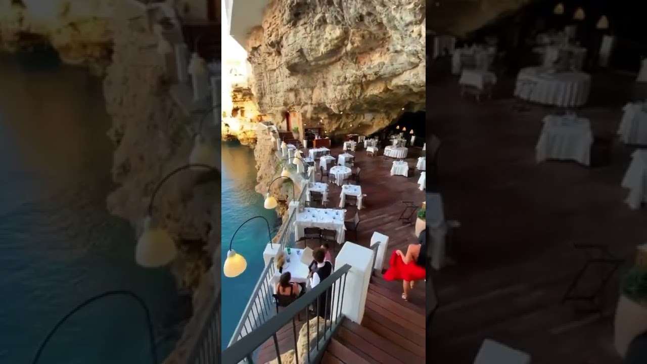 A magical and enchanted place, a restaurant with a terrace created inside a natural cave. The Grotta Palazzese restaurant takes its name from the homonymous cave and from the place that was once also called “Grotta di Palazzo”. It is an exclusive and atmospheric place, used for parties and banquets since 1700, as evidenced by a watercolor of 1783 by Jean Louis Desprez. The blue of the sea and the sky contrasts with the mysterious atmospheres of the natural cavities. The colors of the day make the beauty of the coastal landscape shine, while those of the evening, at sunset, create unforgettable nuances, in the charm and elegance of the restaurant lights.