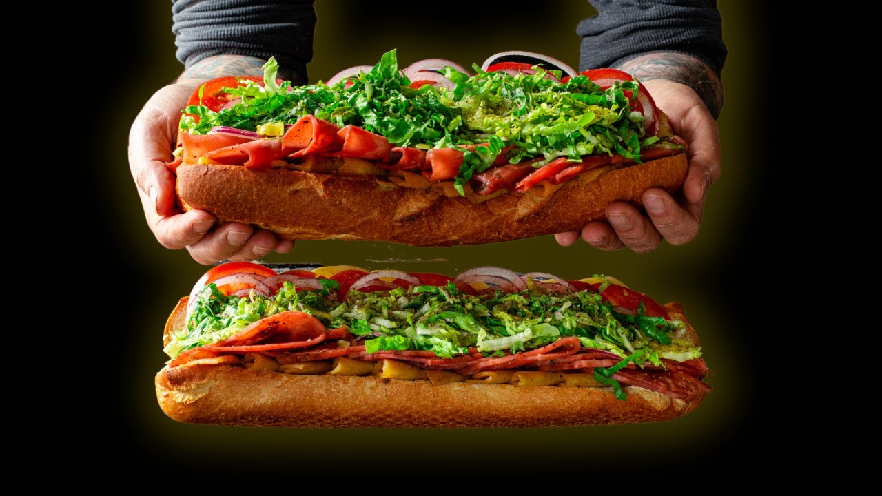 This recipe shown will make 4 huge oversized subs fully loaded enough for 8 portions/people