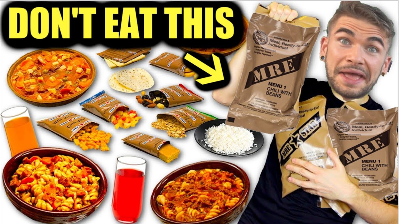 Tune in as we eat MRE meals, and see what army food is like, as we explore these military meals and also meals used in times of hardship, shortage, Humanitarian Pouched Meal, also camping etc. Should we do a video where we only eat army rations for 24 hours? Or eating military food for 24 hours? AKA eating MRE meals for 24 hours?