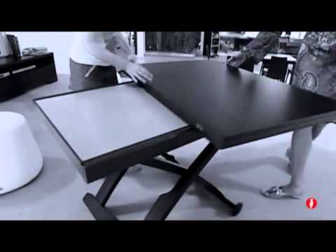 The Mascotte Dining and Cocktail Table is a dynamic, versatile piece of furniture. Great for condo living and small spaces, this acts as a cocktail Table until you need it for dining. A button on the side releases the lock and helps the table raise up to a dining height. Once at that height, the tabletop unfolds to double in size. Available in wenge, walnut, natural and cherry. Made in Italy.