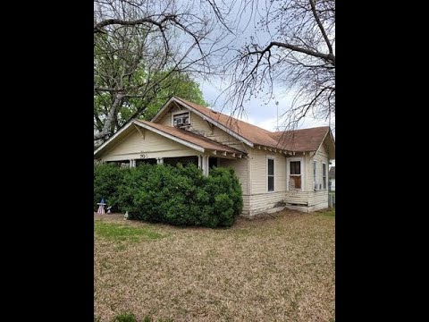 Bring your vision to this 1925 vintage corner home. The front yard has mature trees and one side is lined with crepe myrtle. The full-length front porch brings you into the front room. Need-to-be refinished hardwood floors and in here and in the formal dining or second living area. The kitchen has a gas stove, double sink and windows overlooking the side yard. The laundry area is in the utility room, and leads to the back covered deck stepping into the large fenced backyard. One bedroom is at the front with passage through another doorway to the hall. A small closet is under the stairs. Second bedroom has two doorways. Bath is small and needs floor covering. The attic is being used as a recording studio. It can be used as a media room or made into a playroom. The garage needs a tear down. City of Italy had a water leak causing this home to settle, causing some windows to crack and break. This is someones project dream waiting to come true!