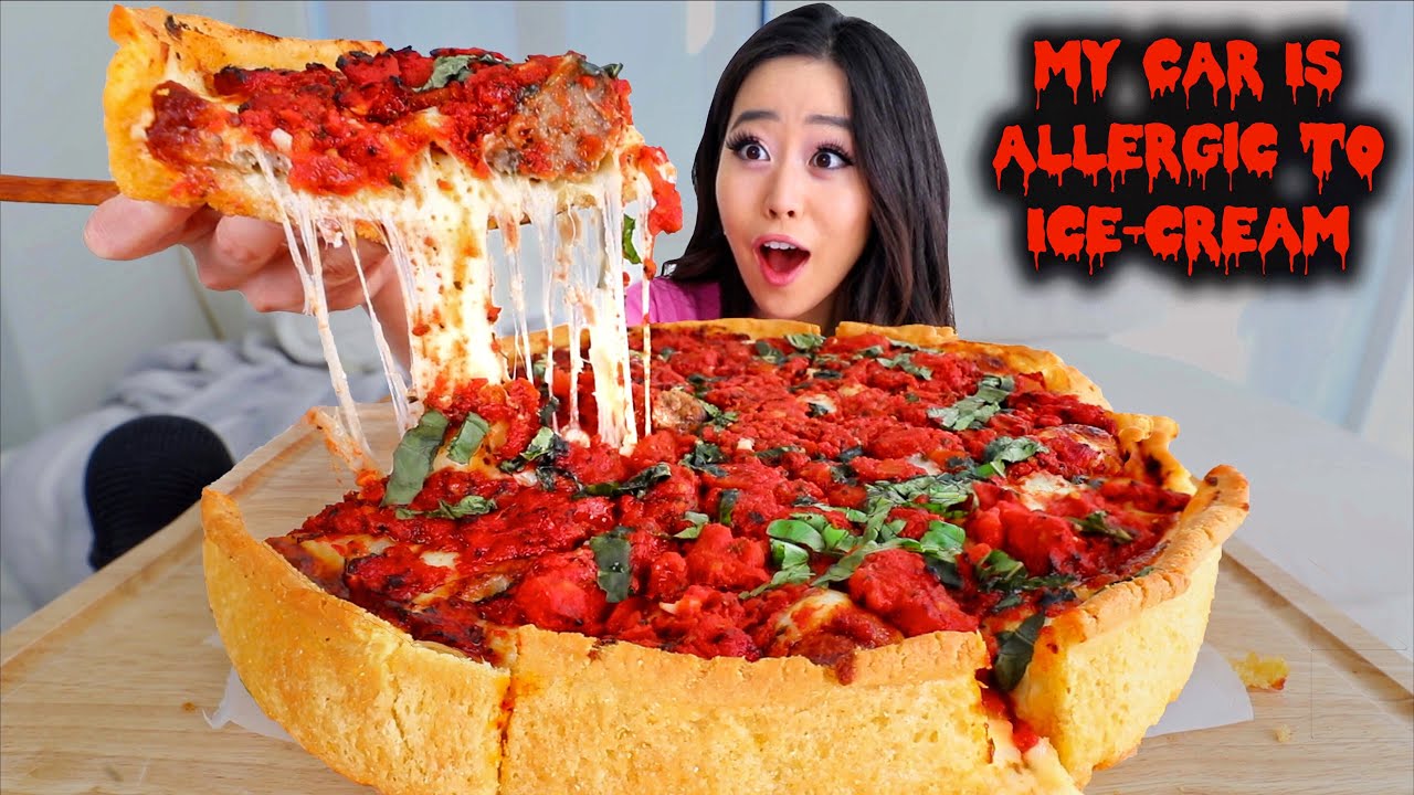 CHEESY DEEP DISH PIZZA STUFFED WITH SPICY ITALIAN MEATBALLS MUKBANG | Eating Show