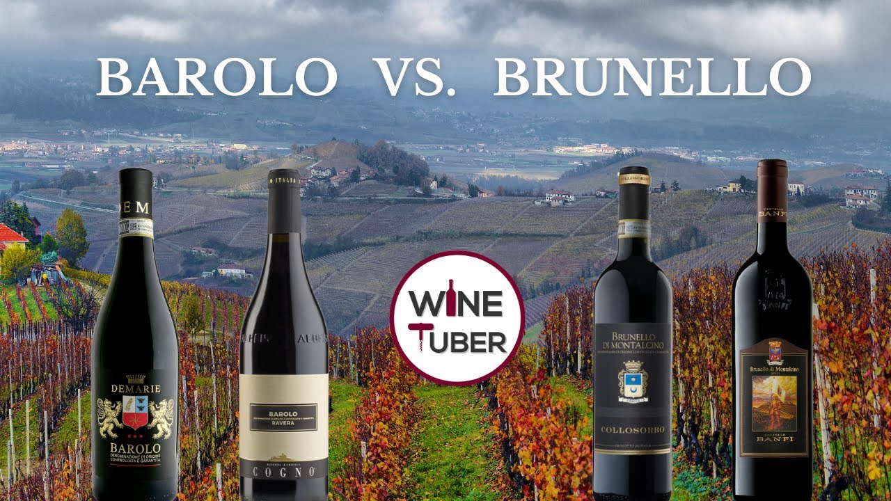 In this video I’m explaining the differences in between Barolo wine and Brunello di Montalcino wine. Barolo is produced in Piedmont region in the northwest part of Italy which is Brunello is made in Tuscany surrounding the beautiful town of Moscow. The main differences between those wines is that Barolo is produced from Nebbiolo grapes only, called locally Spanna, which is Brunello di Montalcino is made from Sangiovese grapes only, called locally Brunello or Prugnolo Gentile. Barolo wines are aged for 38 months, which at lest 18 months in wooden barrels. Barolo Riserva are aged for a minimum 62 months.