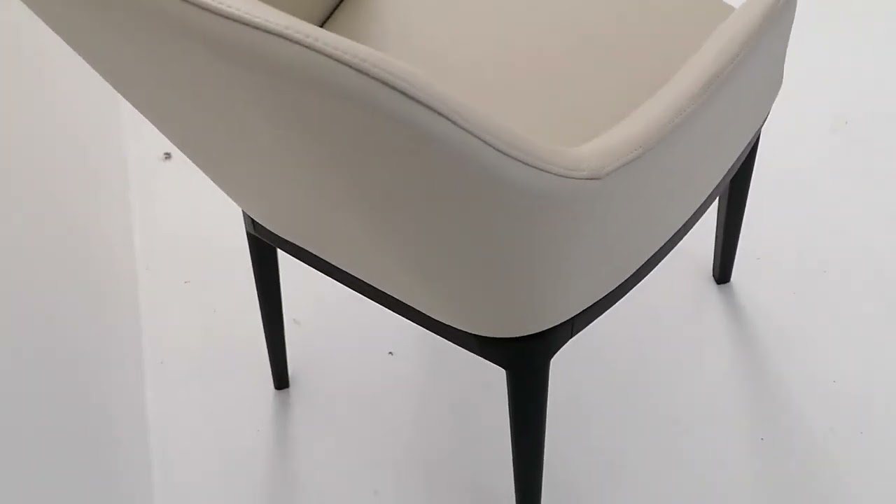 Living room chair with armrests entirely made in Italy with structure in dark oak-stained ash wood and seat in ice-colored leather.