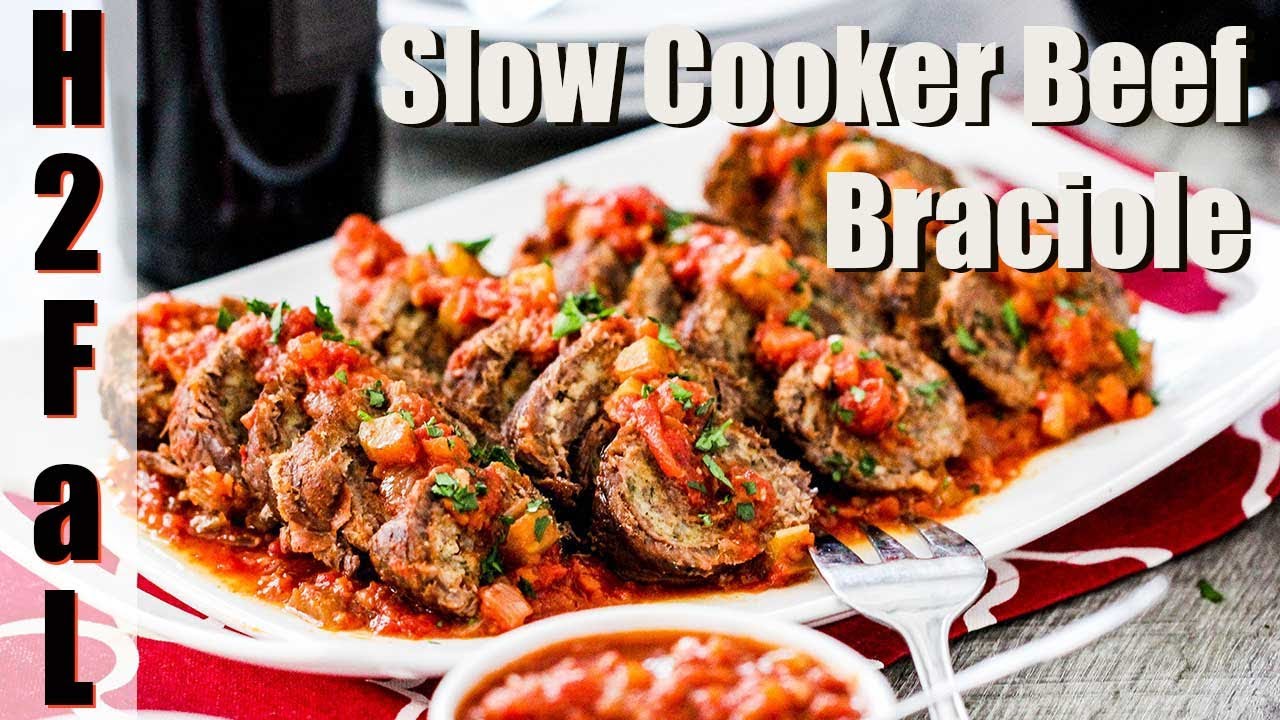 Beef braciole are thin strips of beef rolled with Italian sausage, breadcrumbs, cheese, herbs, and prosciutto and then slow-cooked to perfection in marinara sauce. Amazing!