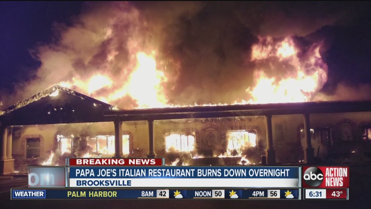 Papa Joe’s Italian Restaurant, a well-known Brooksville eatery in business since 1981, burned down to the ground early Friday morning.