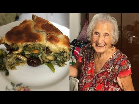 96 year old Feni lives on the island of Procida near Naples. I think the steep flight of stairs to her home are one of the keys to her longevity! She lives on her own, and still cooks something every day. And this is her version of pizza escarole; it’s special, as is she. I will be making this pie during the holidays.