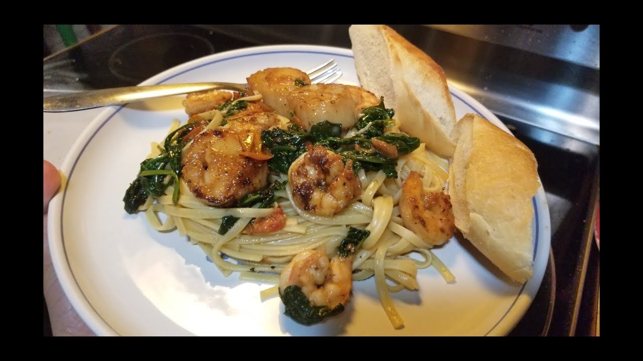 Ingredients:SHRIMPS SCALLOPS SLICED GARLIC SLICED CHERRY TOMATOES OLIVE OIL BLACK PEPPER SALT FRESH BASIL LEAVES SPINACH LINGUINI PASTA WHITE COOKING WINE YOUR CHOICE OF BREAD (WE USED FRENCH AND CIABATTA) PARMESAN CHEESE (OPTIONAL) camera phonecookingcuisinefreeitalianItalian Cookingitalian cuisineItalyItaly CookingItaly Cuisinelinguiniscallopssharingshrimpuploadvideovideo phoneVlogYouTube