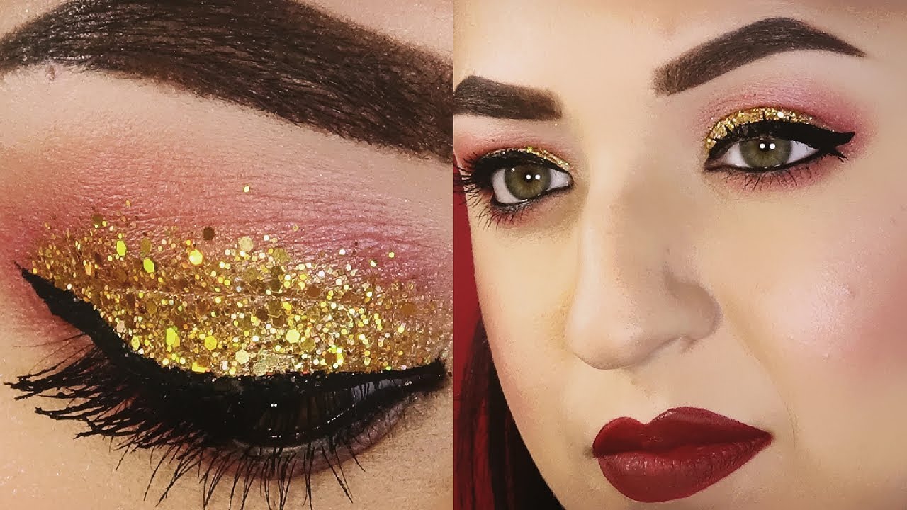 Hi girls! New Christmas makeup tutorial and today I propose a grunge effect look on wine color and holographic gold glitter of various sizes, for the lips I chose to apply a dark red tint.