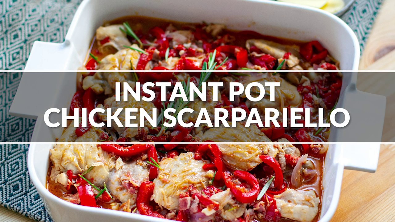 This Instant Pot chicken scarpariello recipe is a pressure cooker version of the American-Italian classic dish made with poultry and sweet and sour sauce of pickled roasted red peppers and rosemary. This sensational dish can be served over your favourite pasta, polenta, rice or vegetables. It’s gluten-free, paleo, Whole30 friendly.