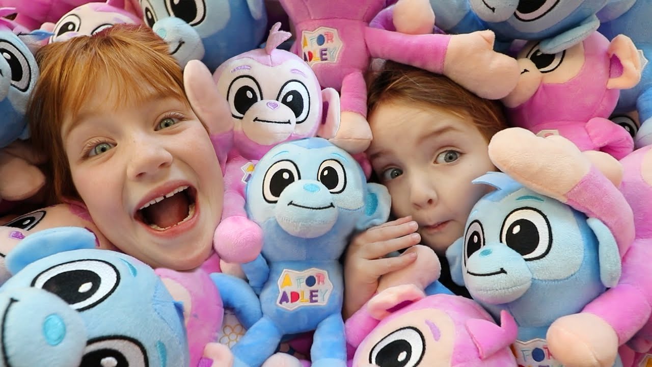 HEY EVERYBODY!! It’s another beautiful day in our neighborhood.. the sun’s shining and the soothing sound of monkeys… wait.. did I just say monkeys?? I woke up to a monkey jumping on my bed pretending to be a rooster! When I finally got the monkey to calm down I noticed that it didn’t have a collar so it must not have a family… well now it’s part of my family! Right as I was about to go downstairs to get some breakfast ANOTHER monkey appeared! They must be brother and sister. Anyways, I guess I need to go find some food for them. They said that they REALLY like bananas so I looked ALL over the house but couldn’t find any! I called my brother / neighbor Niko and asked him to bring some bananas over! When Niko showed up with the bananas the monkeys were SO happy! Niko wanted to have a pair of pet monkeys too.. so we got on aforadley.com to order 2 more monkeys for him. There was all sorts of fun stuff like T-Shirts, Valentines Cards, Posters, and C for Crafts, which is out new DIY craft kit that I have been designing with my family! We ordered 2 monkeys and delivery dad brought them right away! We needed to clean up my house a little bit so we put the monkeys down for a nap while me and Niko did some chores. While we were working, the monkeys woke up and ordered 1000 more monkeys without us knowing! A couple minutes later delivery dad showed up with TONS of monkeys! I told him that we didn’t order them but he didn’t believe me! We definitely need something to keep these monkeys busy… so I asked Mailman Dad if he could bring some fun things for them the play with! He came back with come C for Craft kits and the A for Adley valentines tin! Luckily he brought some extras cause I really wanted to play with them too! Me, Niko, and Dad decided to make some valentines gifts and cards for each other while the monkeys were playing inside! I love our new A for Adley valentines merch and we me LOTS for all of our friends! You can get it on: https://shopadley.com/