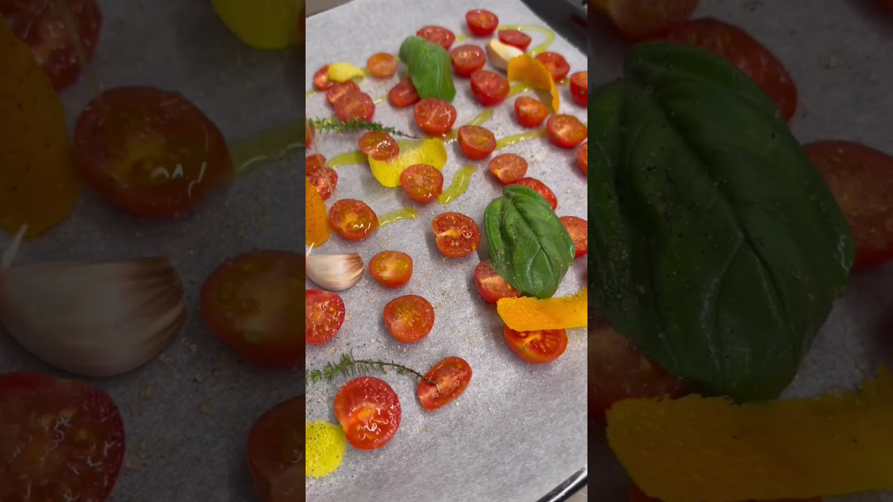 I pomodorini confit si preparano dividendo i pomodorini a metà e cuocendoli in forno a bassa temperatura con l’aggiunta di erbe aromatiche, scorza di agrumi e un pizzico di zucchero.