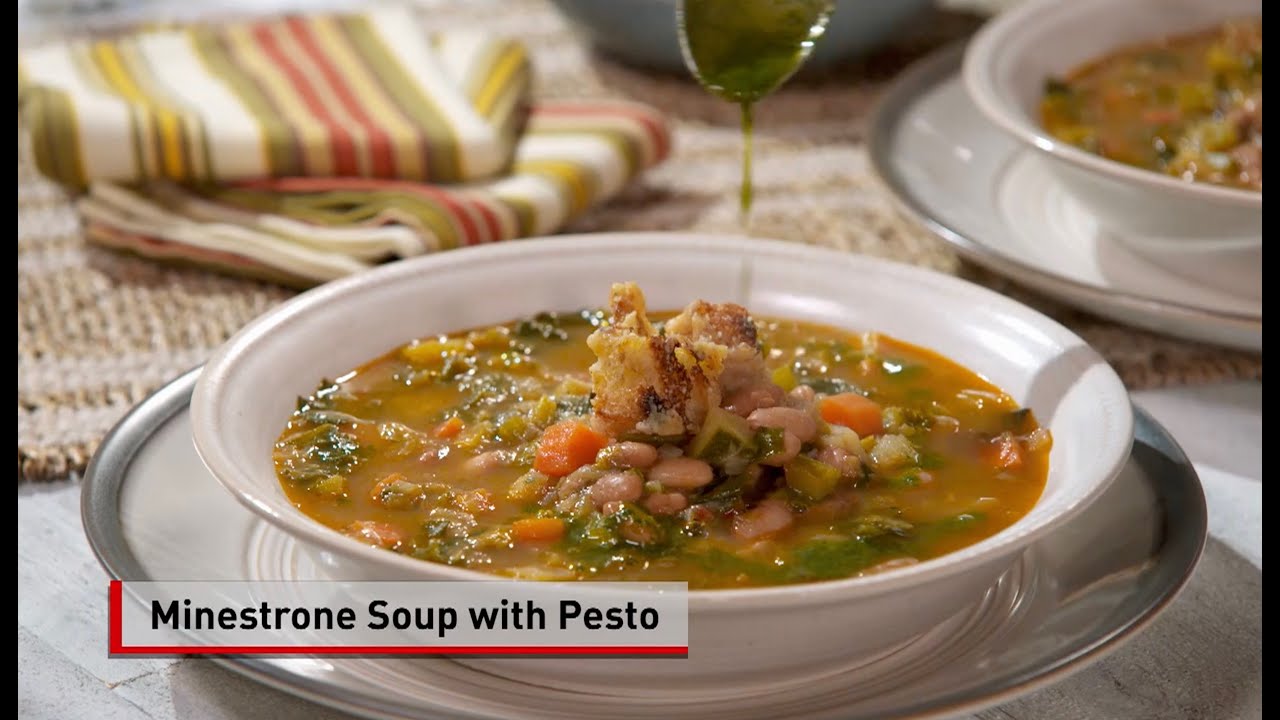 A Winter Warm-up! A steaming bowl of delicious soup is always welcome in the chill air of the Italian Alps and in this recipe I brigeten the fresh vegetable flavors with a tasty basil walnut pesto. Buon Appetito! https://lidiasitaly.com/recipes/minestrone-soup-pesto/ #TuttiaTavolaaMangiare #LidiasRecipes #LidiasItaly #LidiasKitchen #LidiaBastianich #ItalianFood #25YearsofLidia