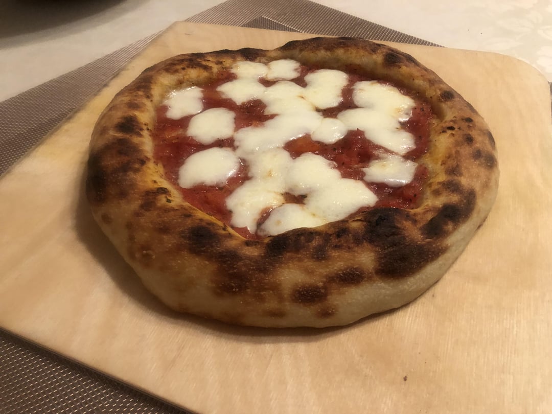 Kinda challenging to make crust puff up nicely in the regular oven, but using broiler and putting stone on the top rack really helped with everything, this one was really good, crust was soft and crunchy and with a little char on top