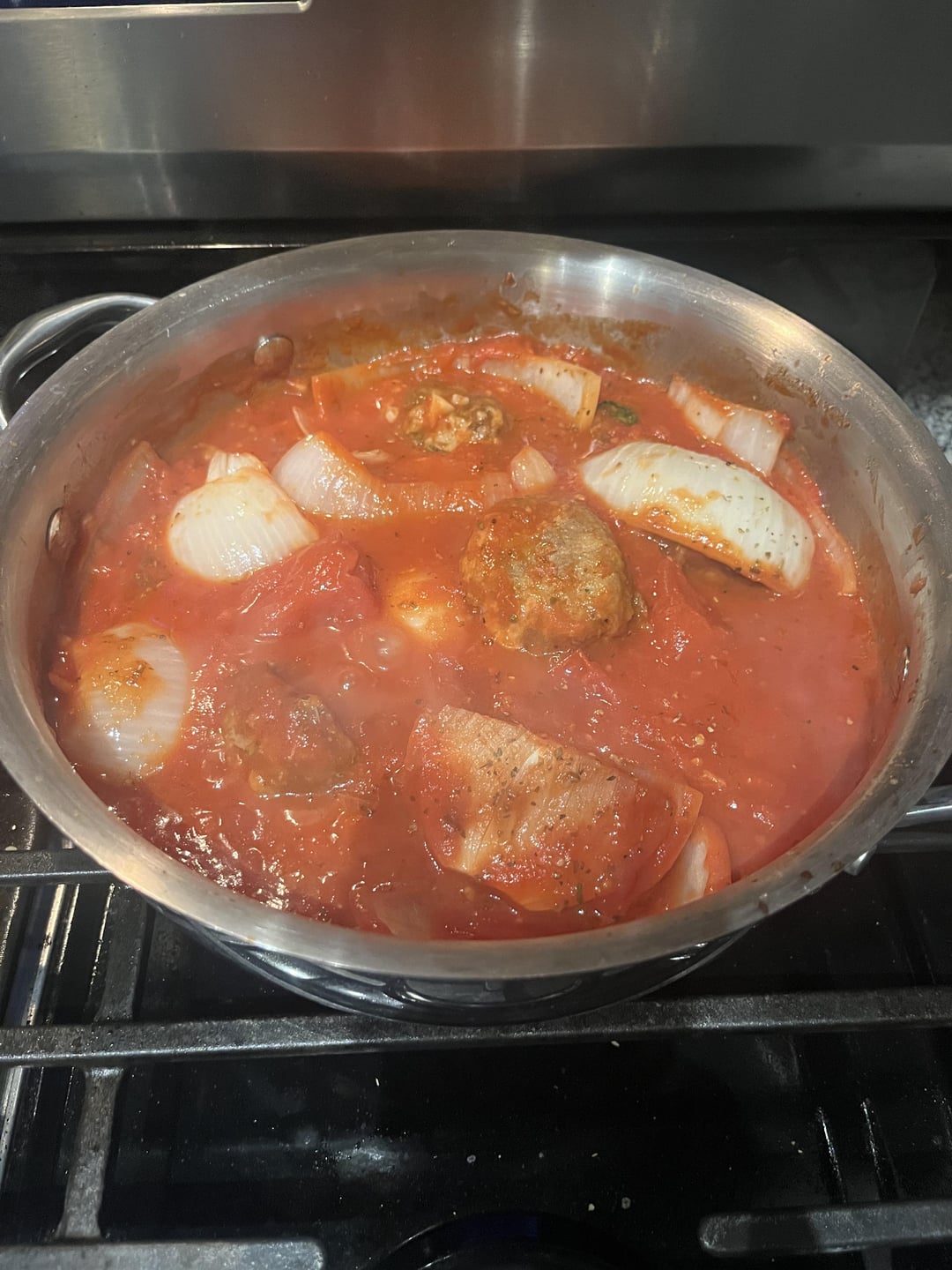 I use Marcella Hazan’s tomato sauce and doctor it up with rough chopped garlic, basil, oregano, time and black pepper. Perfect for spaghetti.
