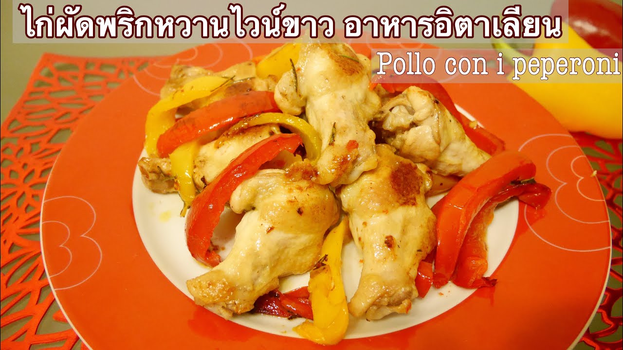 ไก่ผัดพริกหวานไวน์ขาว อาหารอิตาเลียน Chicken with Sweet Peppers (Pollo con i Peperoni)