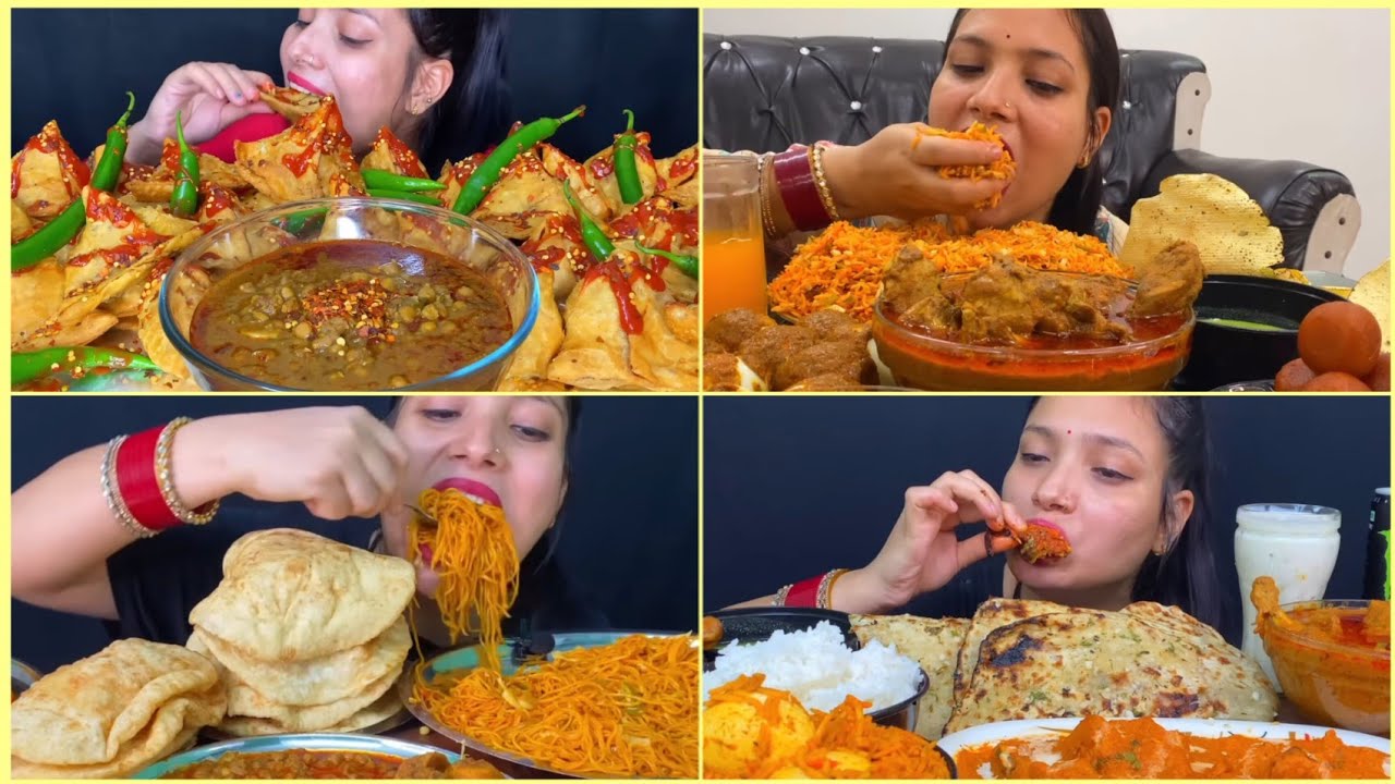EATING FOOD COMPILATION,SPICY CHOLE BHATURE, SAMOSA, CHICKEN LOLIPOP, CHICKEN RICE WITH GRAVY (BIG BITES)