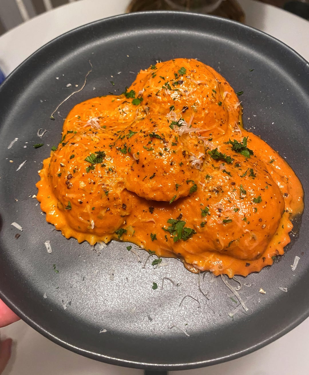 Mixed crab, ricotta, chives and lemon zest in a bowl with a bit of Parmesan. Filled in a heavy egg yolk dough (about 200g of yolks). Cut, boil and throw in a pan of rosé (homemade marinara with cream) by floyder55 Homemade Dish - From ScratchPasta 4 Comments mom2emnkate 3 years ago That looks and sounds delicious! JustBrosDocking 3 years ago This looks spectacular! When you roll out your sheets, how thick do you usually roll it out to? The shape on these held up wonderfully Active_M 3 years ago I want to have a taste of this! KingslayerN7 3 years ago What did you do for the sauce?Write A CommentYou must be logged in to post a comment.