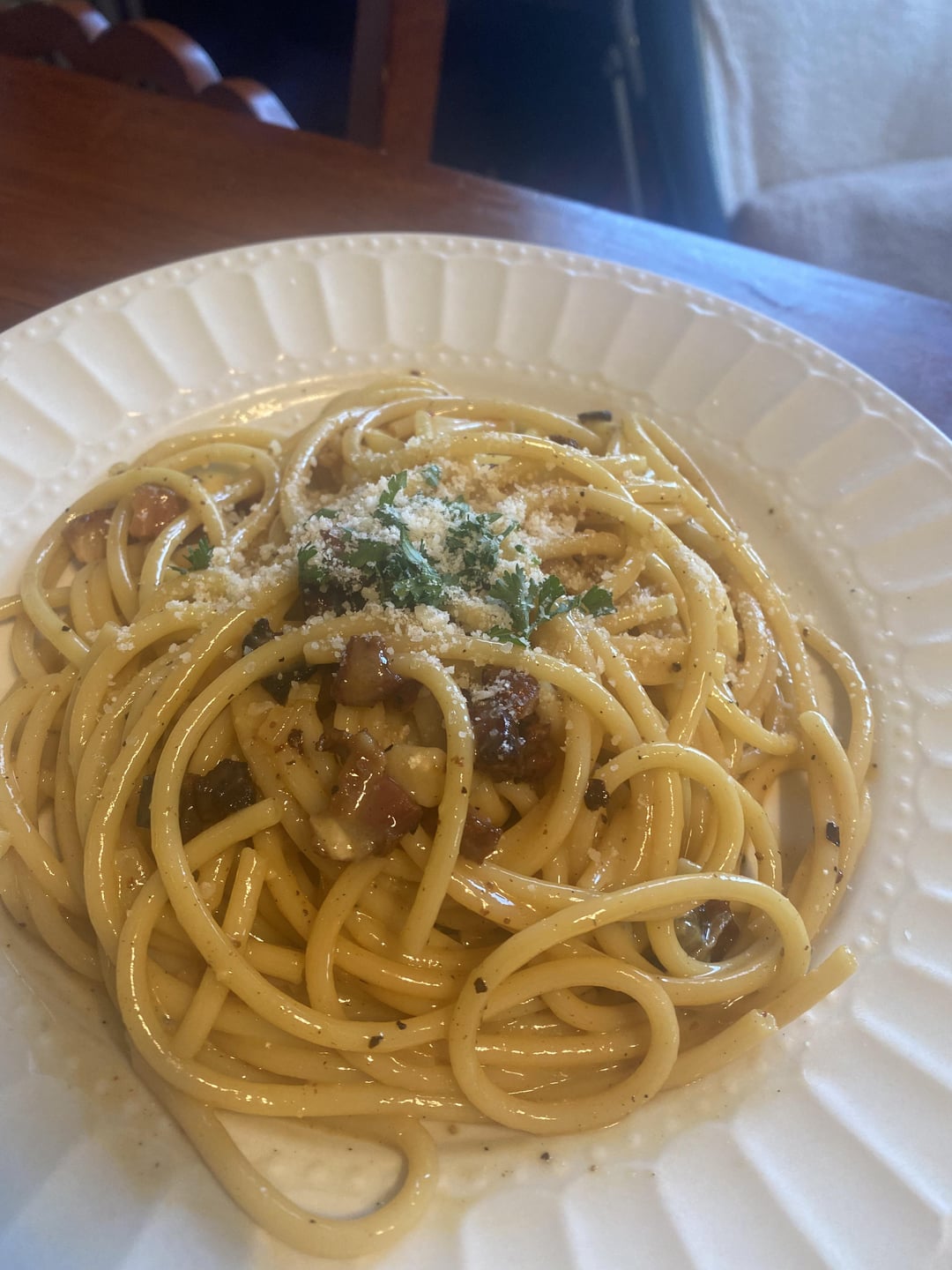 Carbonara with mesquite smoked guanciale