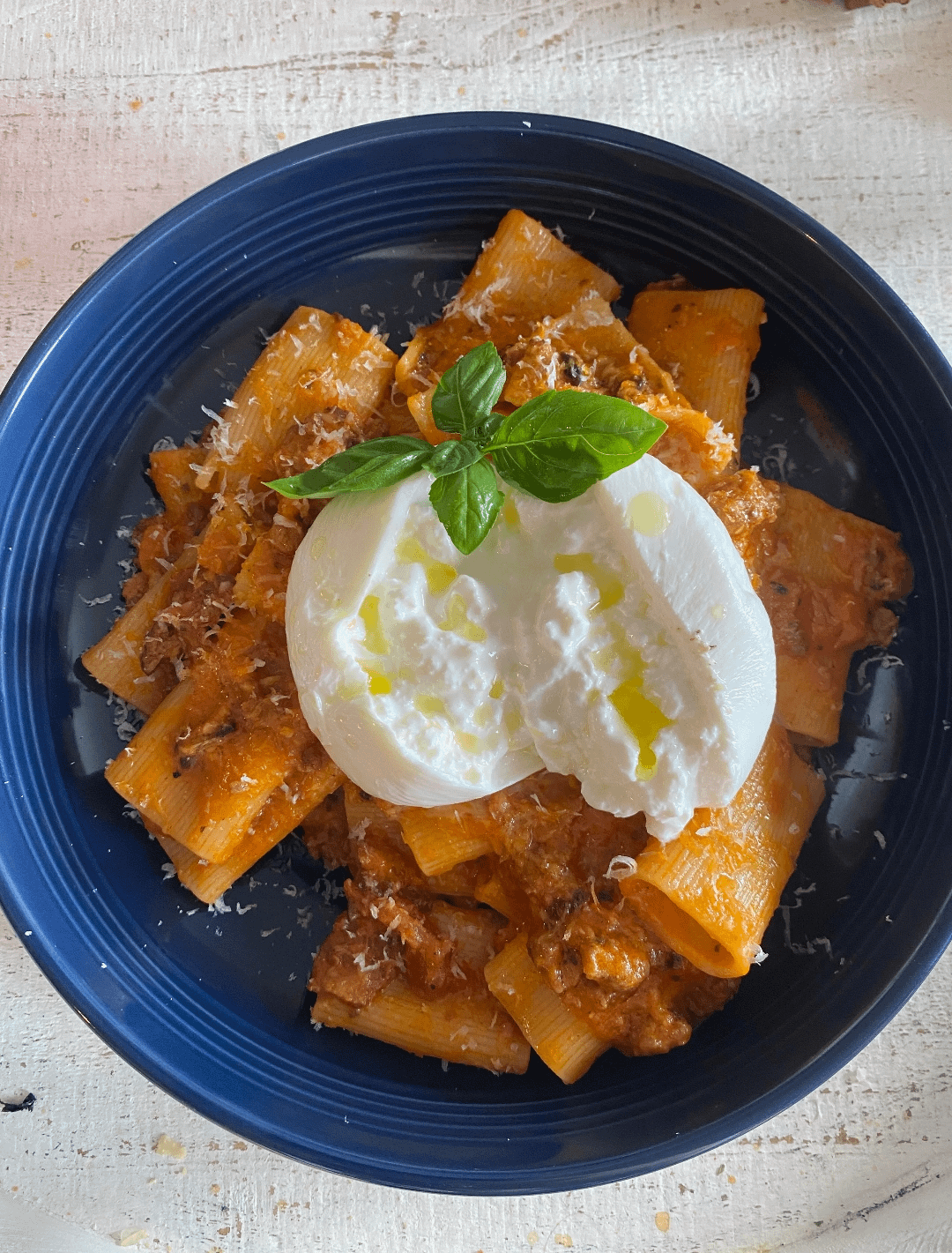 Burrata topped pasta is my jam