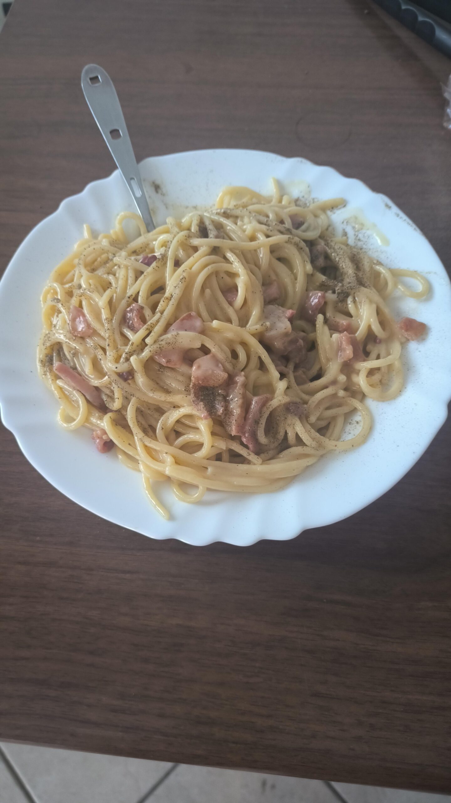That pancetta seems a bit boiled and the spaghetti a bit dry, but itโs a just a picture.