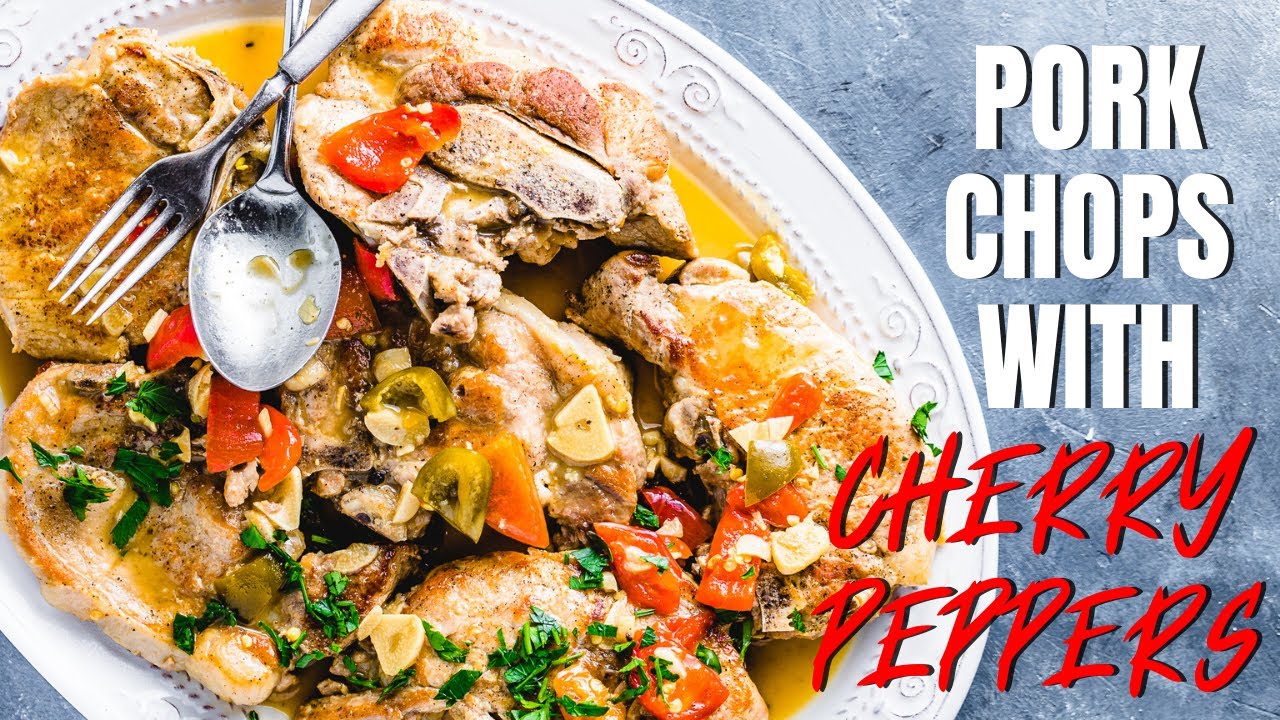This braised pork chop recipe with cherry peppers (vinegar peppers) and garlic in a vinegar and white wine sauce is super flavorful and really easy to make. Cherry peppers aren’t that spicy, but they have such a uniquely delicious flavor, that’s almost made for pork.
