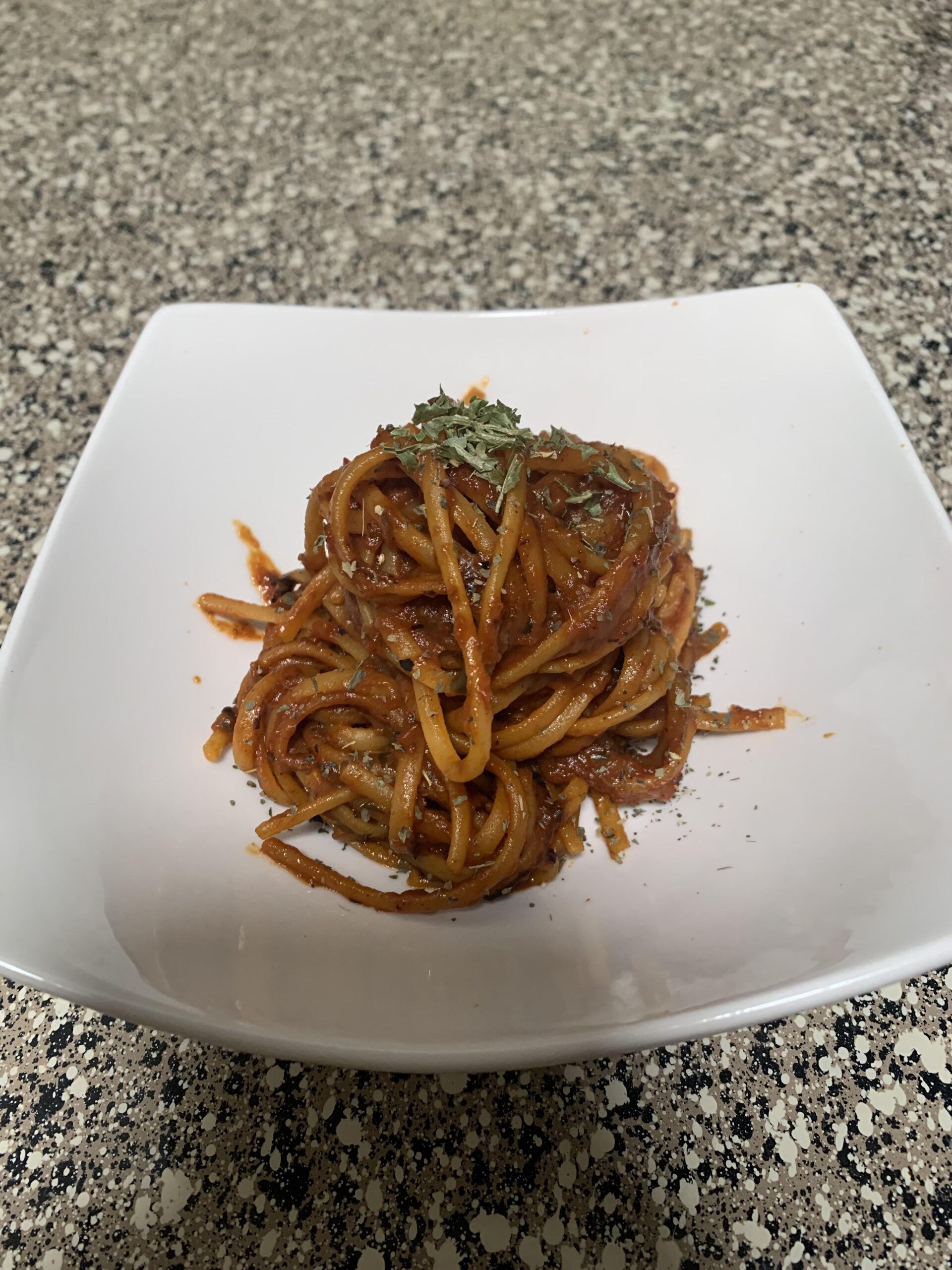 Spaghetti all’Assassina. Never thought cooking dry spaghetti in a pan would be a good idea, but here we areby Pretty_Problem_9638 Homemade DishPasta 1 Comment Pretty_Problem_9638 3 years ago This video showed up in my feed, and I decided to try it out. Just kind of followed what the guy was doing, but also put sauce and water little bit at a time like most other recipes do.https://youtu.be/gv3lvKy_WD4I used Rao’s homemade tomato basil and some store-bought pasta (forgot brand).Write A CommentYou must be logged in to post a comment.