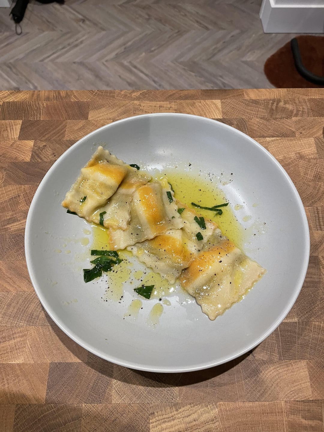 For the filling simply combine three types of vegan cheese. Spoon into center and combine in the typical way for ravioli.